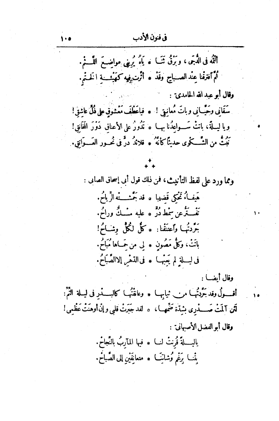 ومما ورد على لفظ التأنيث، فمن ذلك قول أبى إسحاق الصابى: