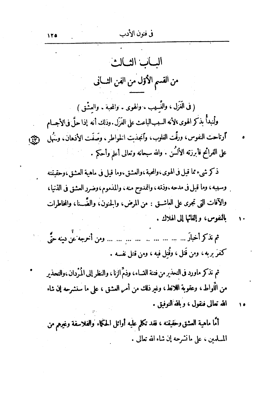 الباب الثالث من القسم الأوّل من الفن الثانى (فى الغزل، والنّسيب، والهوى، والمحبة، والعشق)