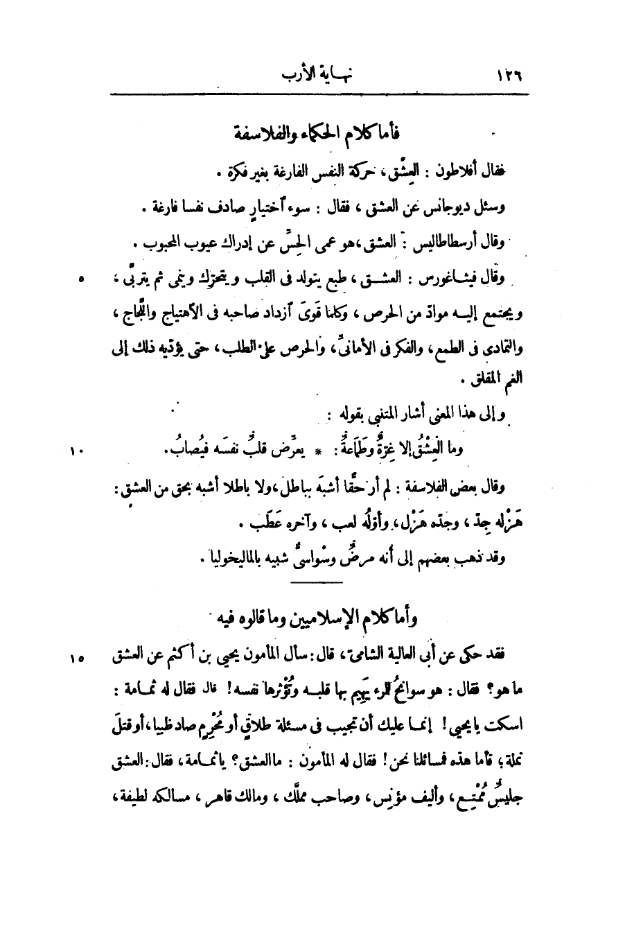 فقال أفلاطون: العشق، حركة النفس الفارغة بغير فكرة.