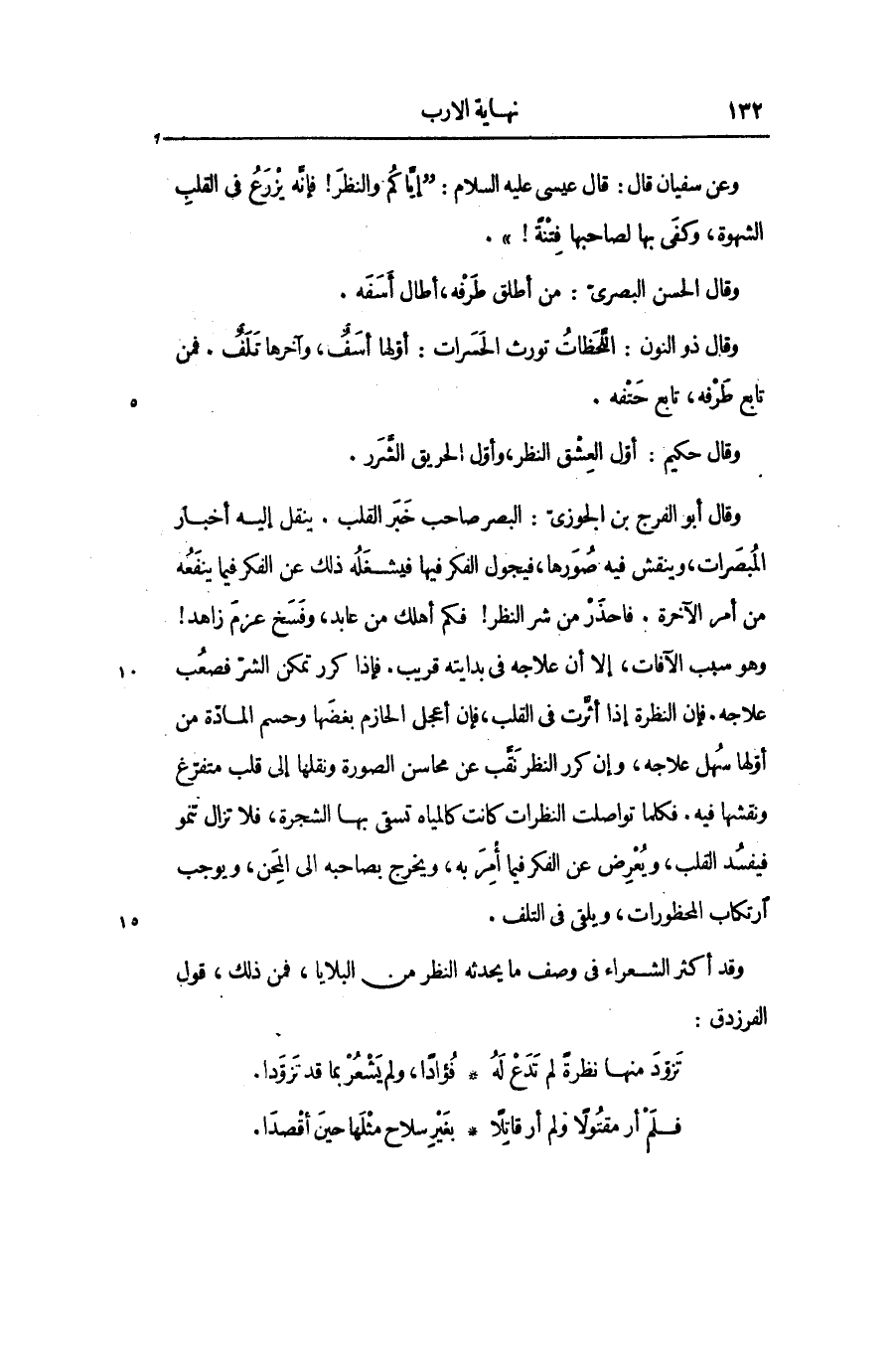 وقد أكثر الشعراء في وصف ما يحدثه النظر من البلايا، فمن ذلك، قول الفرزدق: