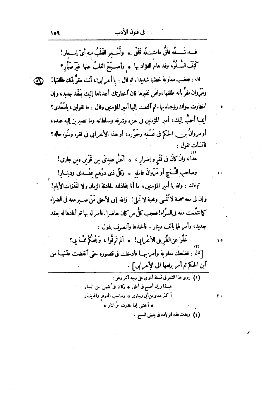 قال: [2] فضحك معاوية وأمر بها فأدخلت في قصوره حتى انقضت عدّتها من ابن الحكم ثم أمر برفعها إلى الأعرابى.