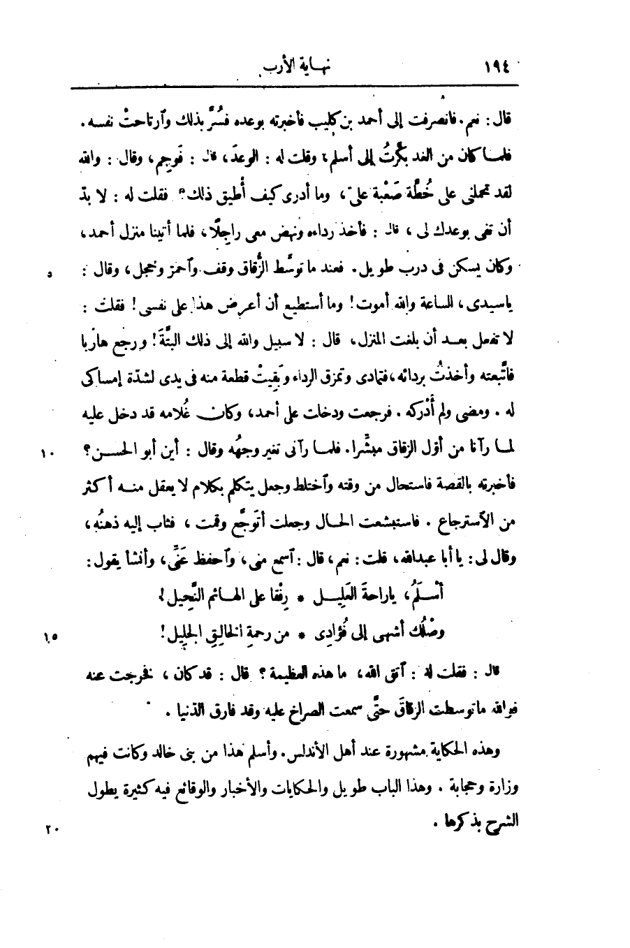 فأخبرته بالقصة فاستحال من وقته واختلط وجعل يتكلم بكلام لا يعقل منه أكثر من الاسترجاع. فاستبشعت الحال وجعلت أتوجّع وقمت، فثاب إليه ذهنه، وقال لى: يا أبا عبد الله، قلت: نعم، قال: اسمع منى، واحفظ عنّى، وأنشأ يقول: