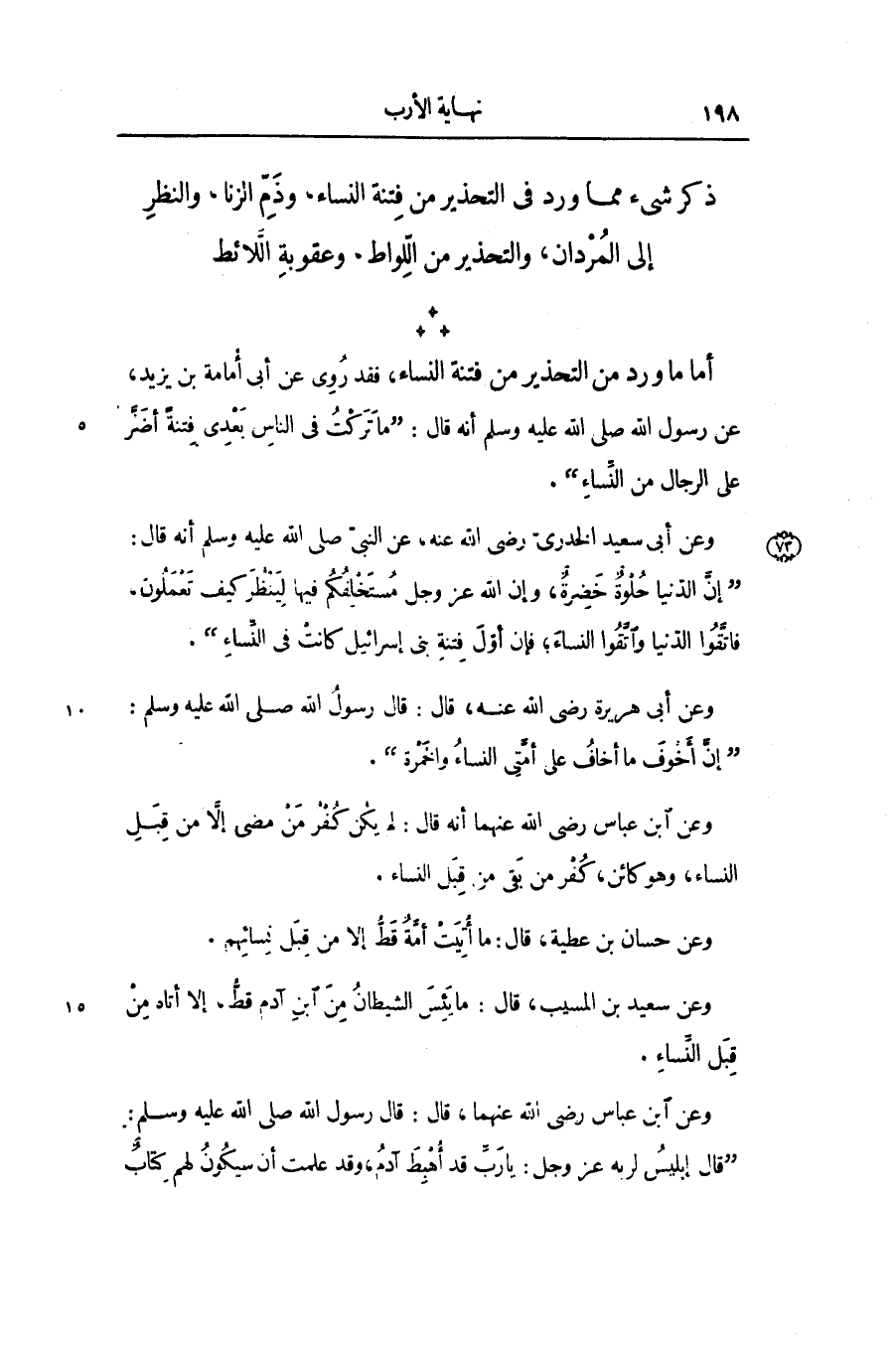 ذكر شىء مما ورد في التحذير من فتنة النساء، وذمّ الزنا، والنظر إلى المردان، والتحذير من اللّواط، وعقوبة اللّائط
