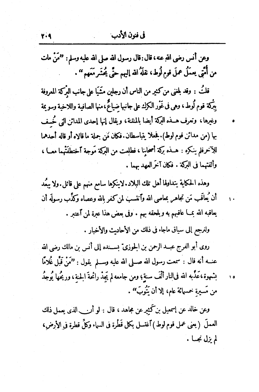 وعن خالد عن إسمعيل بن كثير عن مجاهد، قال: لو أن الذى يعمل ذلك العمل (يعنى عمل قوم لوط) اغتسل بكل قطرة في السماء وكلّ قطرة في الأرض، لم يزل نجسا.
