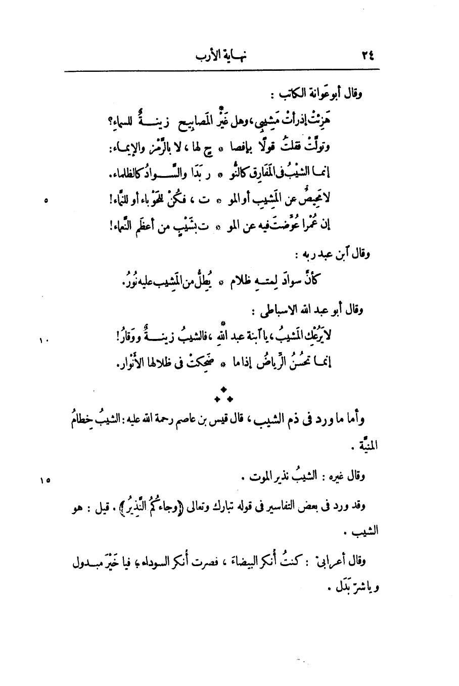 إنما الشيب في المفارق كالنّو ... ر بدا والسّواد كالظلماء.