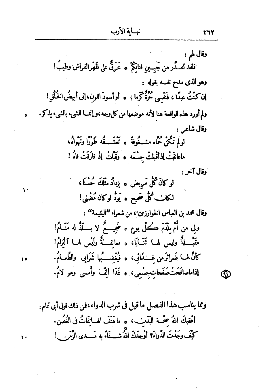 ومما يناسب هذا الفصل ما قيل في شرب الدواء، فمن ذلك قول أبى تمام: