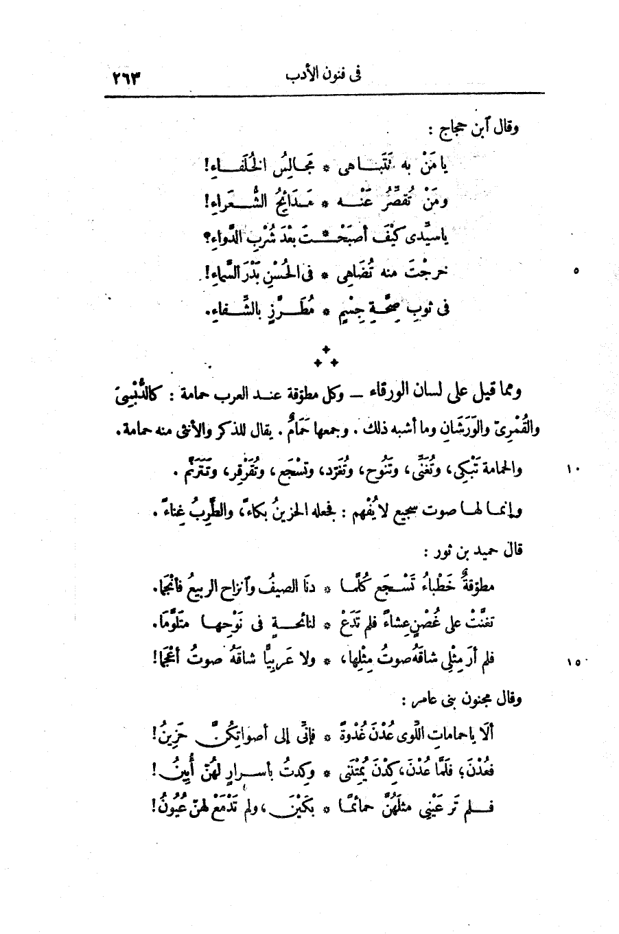 ألا يا حمامات اللّوى عدن غدوة ... فإنّى إلى أصواتكنّ حزين!