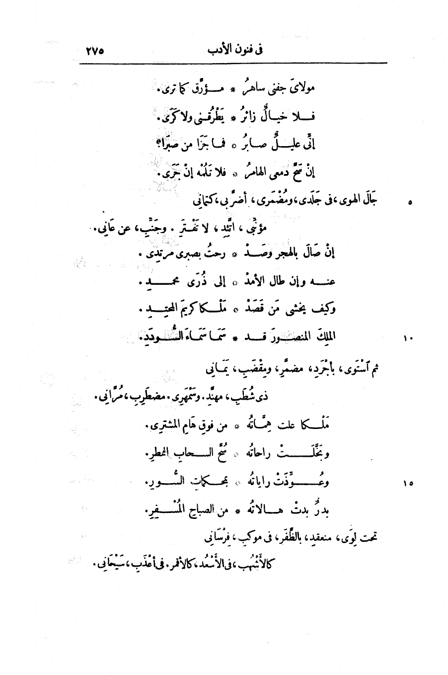 جال الهوى، فى جلدى، ومضمرى، أضرّبى، كتمانى ... مؤنّبى، اتّئد، لا تفتر. وجنّب، عن عانى.