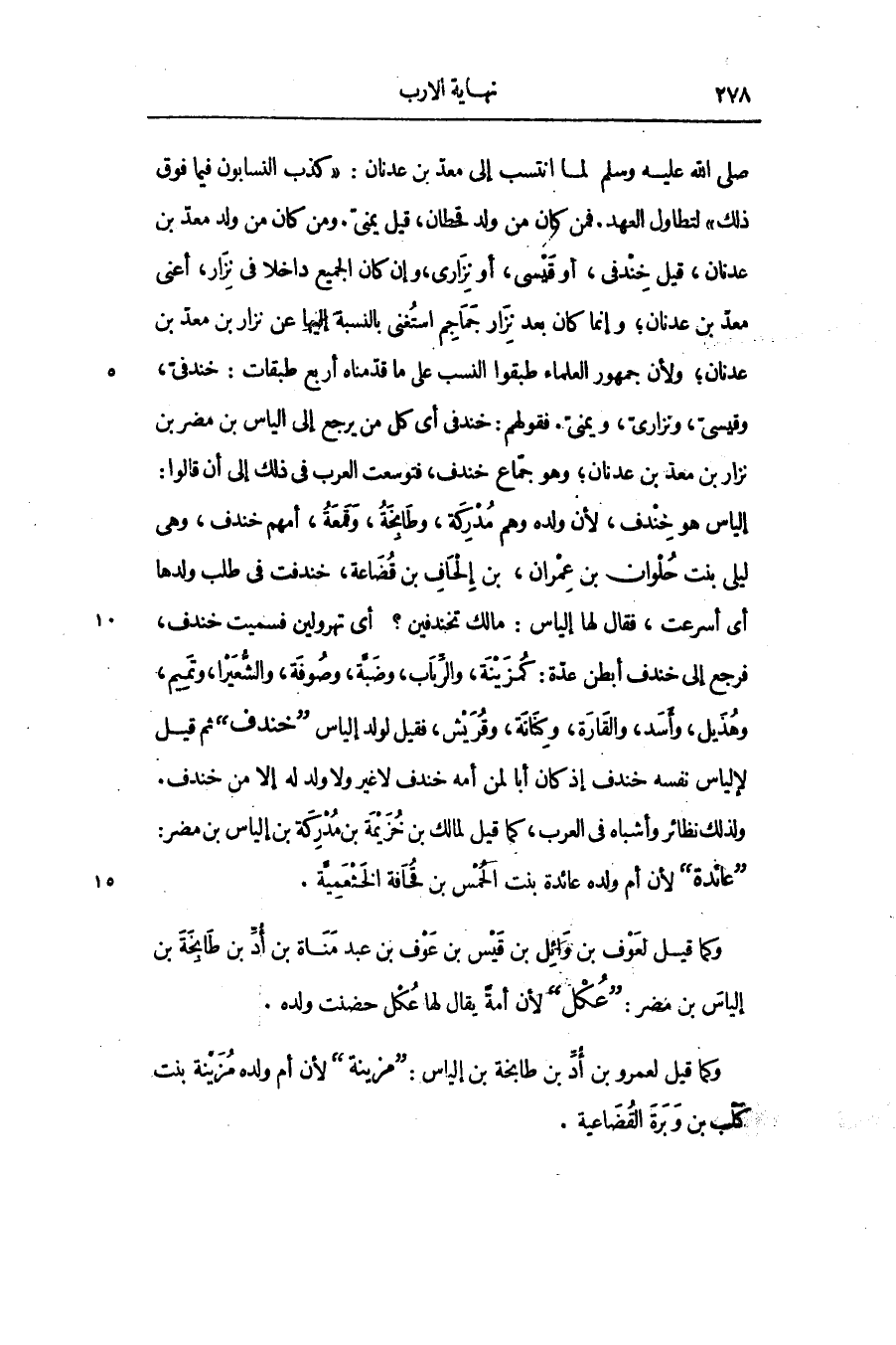 صلى الله عليه وسلم لما انتسب إلى معدّ بن عدنان: «كذب النسابون فيما فوق ذلك»