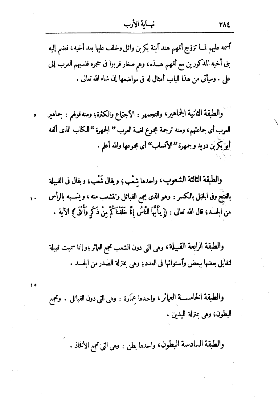 والطبقة الخامسة العمائر، واحدها عمارة: وهى التى دون القبائل. وتجمع البطون؛ وهى بمنزلة اليدين.