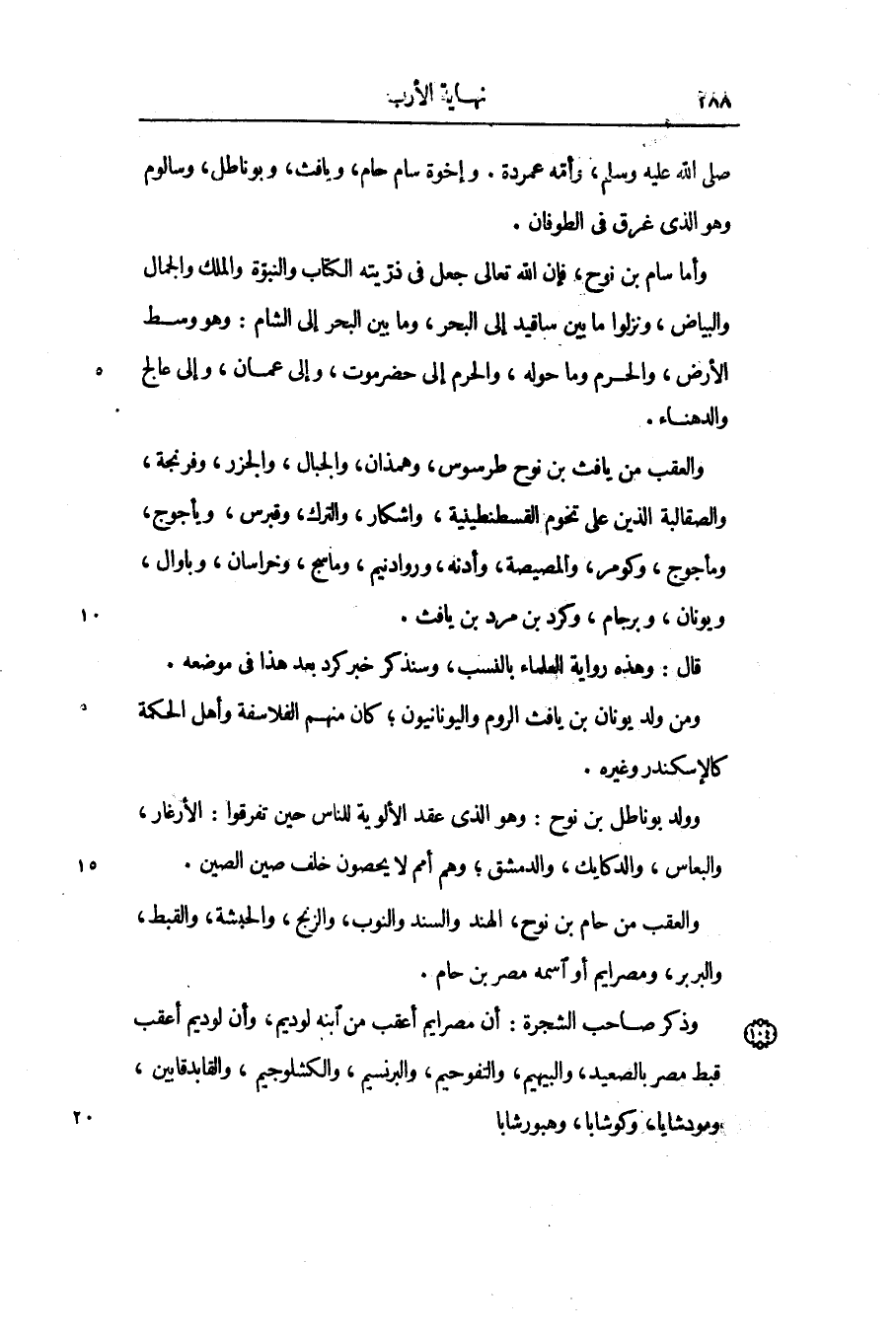 وأما سام بن نوح، فإن الله تعالى جعل في ذرّيته الكتاب والنبوّة والملك والجمال والبياض، ونزلوا ما بين ساقيد إلى البحر، وما بين البحر إلى الشام: وهو وسط الأرض، والحرم وما حوله، والحرم إلى حضرموت، وإلى عمان، وإلى عالج والدهناء.