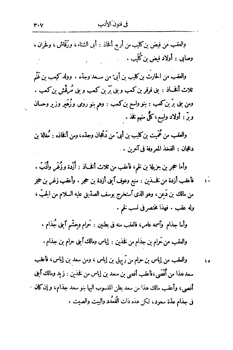 والعقب من فيض بن كليب من أربع أفخاذ: أبى الشتاء، ورقاش، وقحران، وصابى: أولاد فيض بن كليب.