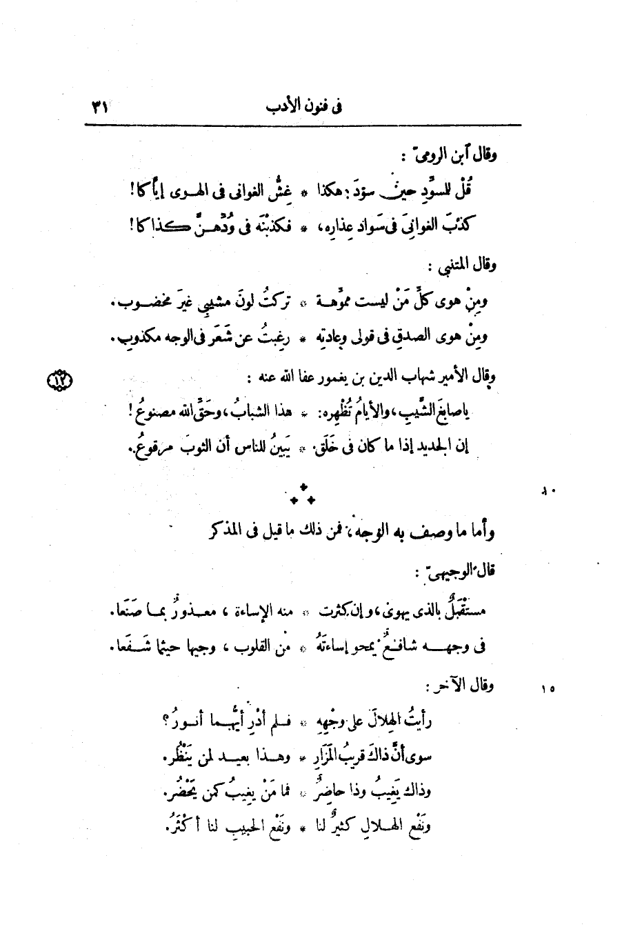 وأما ما وصف به الوجه، فمن ذلك ما قيل في المذكر قال الوجيهىّ: