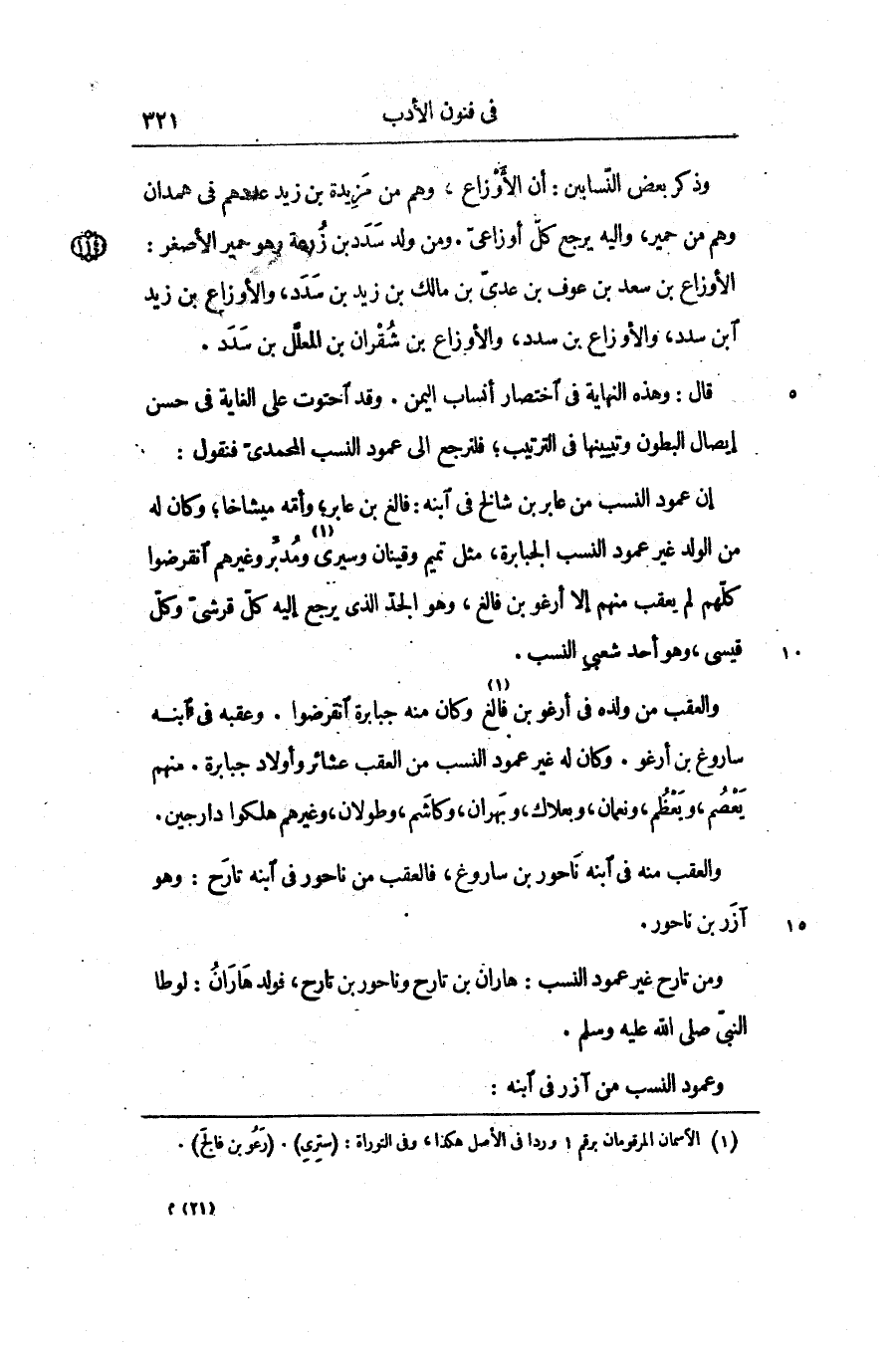قال: وهذه النهاية في اختصار أنساب اليمن. وقد احتوت على الغاية في حسن إيصال البطون وتبيينها في الترتيب؛ فلنرجع الى عمود النسب المحمدىّ فنقول: