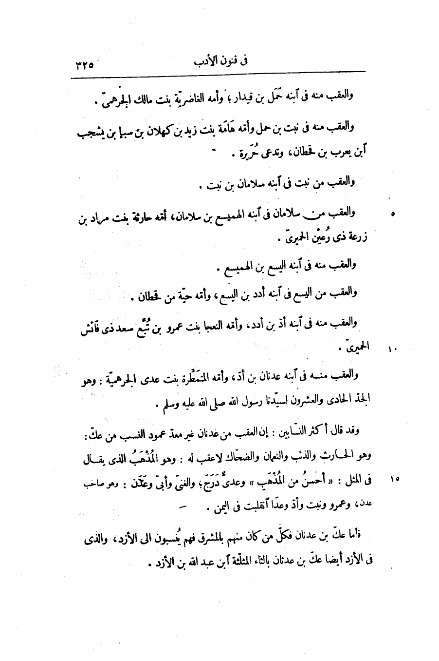 وهو الحارث والذئب والنعمان والضحّاك لا عقب له: وهو المذهب الذى يقال فى المثل: «أحسن من المذهب» وعدىّ درج؛ والغنىّ وأبىّ وعدن: وهو صاحب عدن، وعمرو ونبت وأدّ وعدا انقلبت في اليمن.