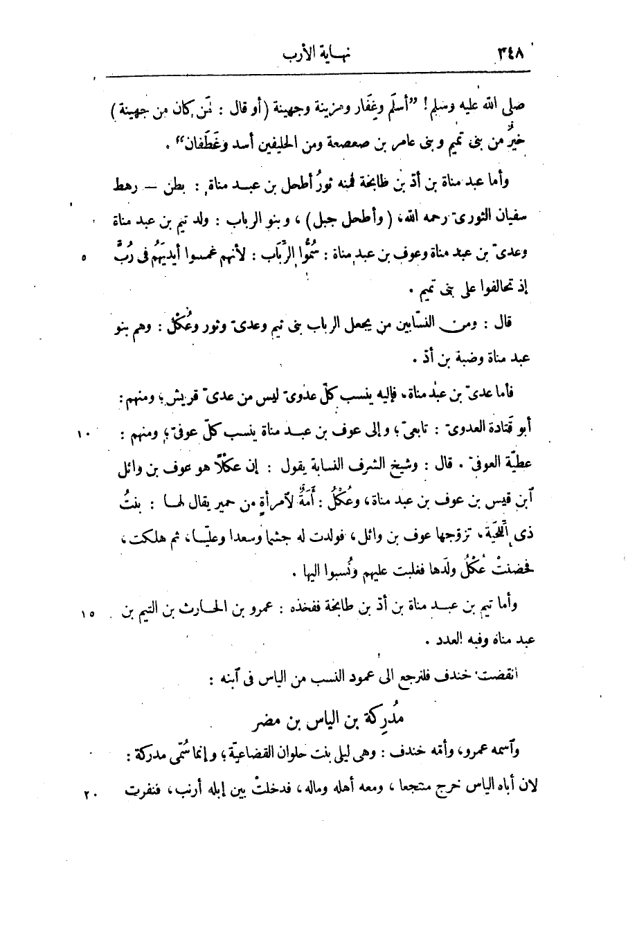 قال: ومن النسّابين من يجعل الرباب بنى تميم وعدىّ وثور وعكل: وهم بنو عبد مناة وضبة بن أدّ.