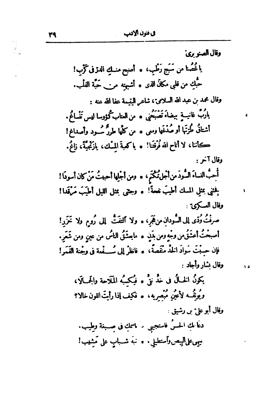 فإن حسبت سواد الخدّ منقصة، ... فانظر إلى سفعة في وجنة القمر!