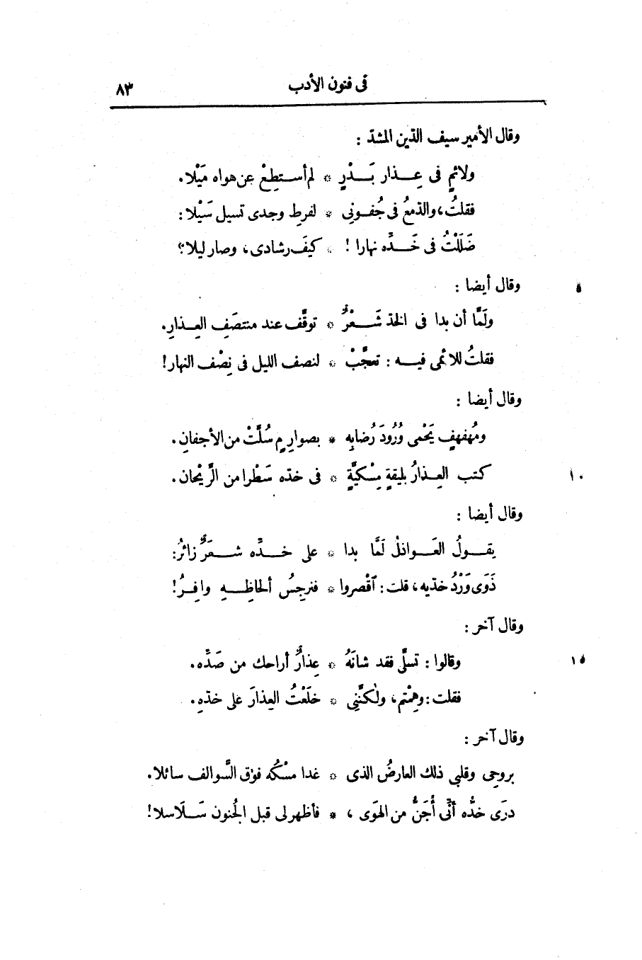كتب العذار بليقة مسكيّة ... فى خدّه سطرا من الرّيحان.