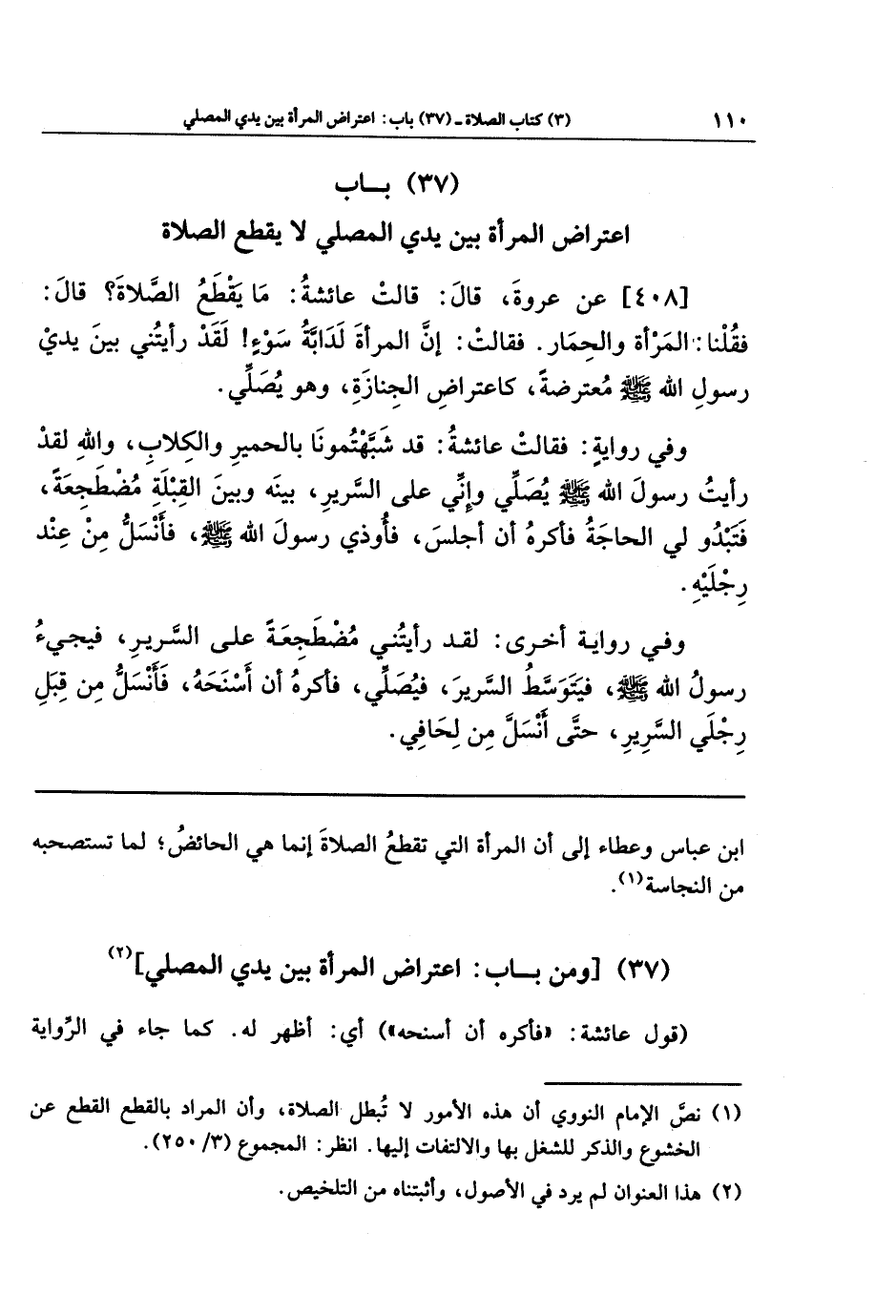 (37) باب اعتراض المرأة بين يدي المصلي لا يقطع الصلاة