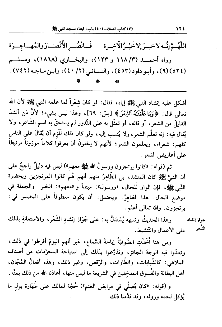وهذا الحديث وشِبهُهُ يُستدلّ به على جواز إنشاد الشعر، والاستعانة بذلك على الأعمال والتنشيط.