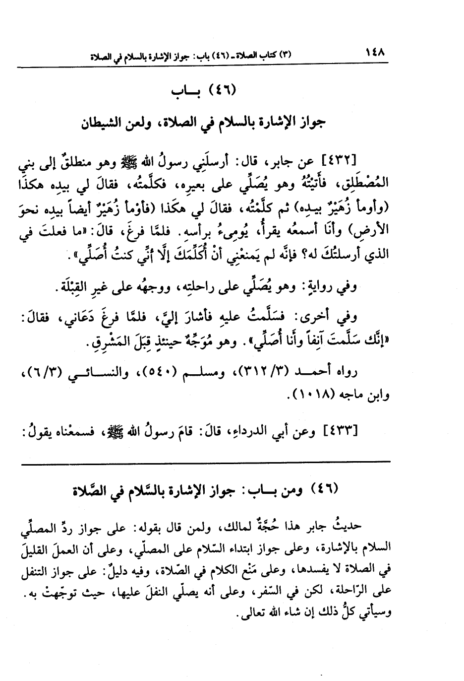 (46) باب جواز الإشارة بالسلام في الصلاة، ولعن الشيطان