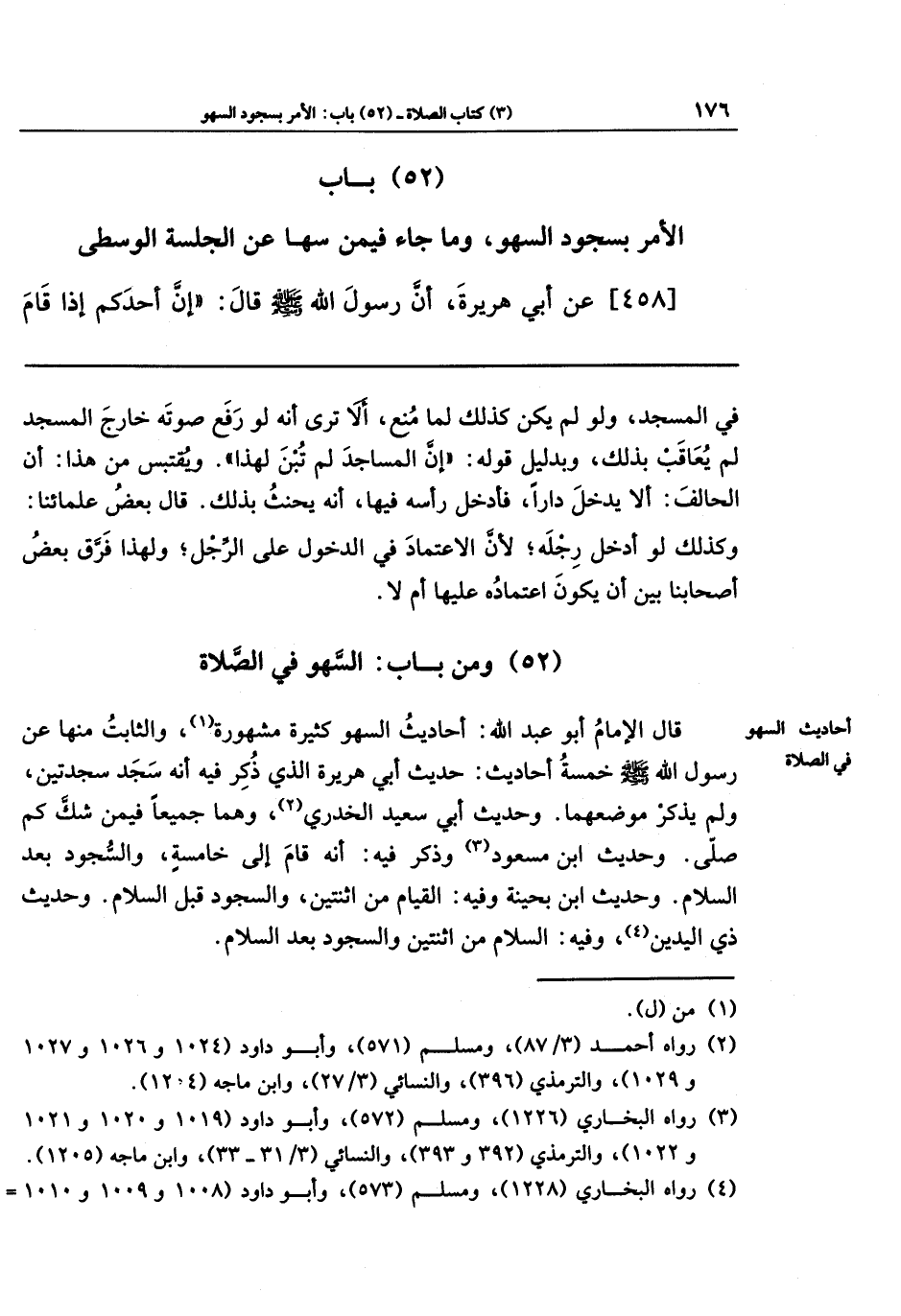 (52) باب الأمر بسجود السهو، وما جاء فيمن سها عن الجلسة الوسطى