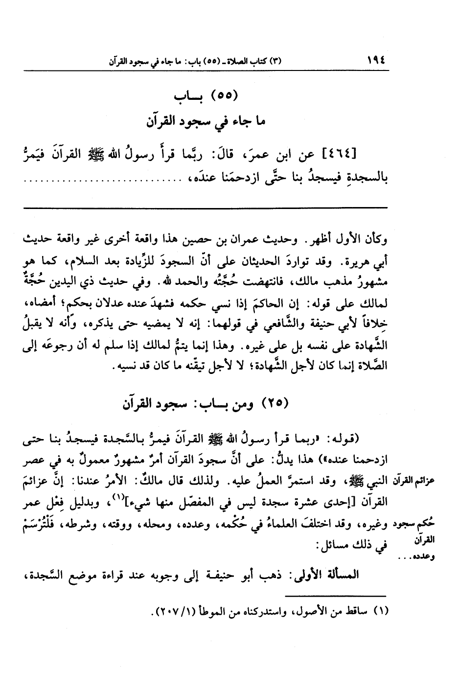 وكأن الأول أظهر. وحديث عمران بن حصين هذا واقعة أخرى غير واقعة حديث أبي هريرة، وقد توارد الحديثان على أن السجود للزيادة بعد السلام، كما هو مشهور مذهب مالك، فانتهضت حجتهُ والحمد لله.