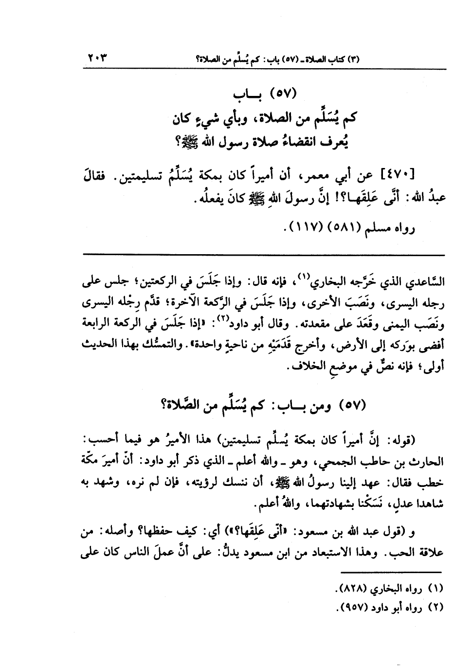 (57) باب كم يسلم من الصلاة، وبأي شيء كان يعرف انقضاء صلاة رسول الله - صلى الله عليه وسلم -؟