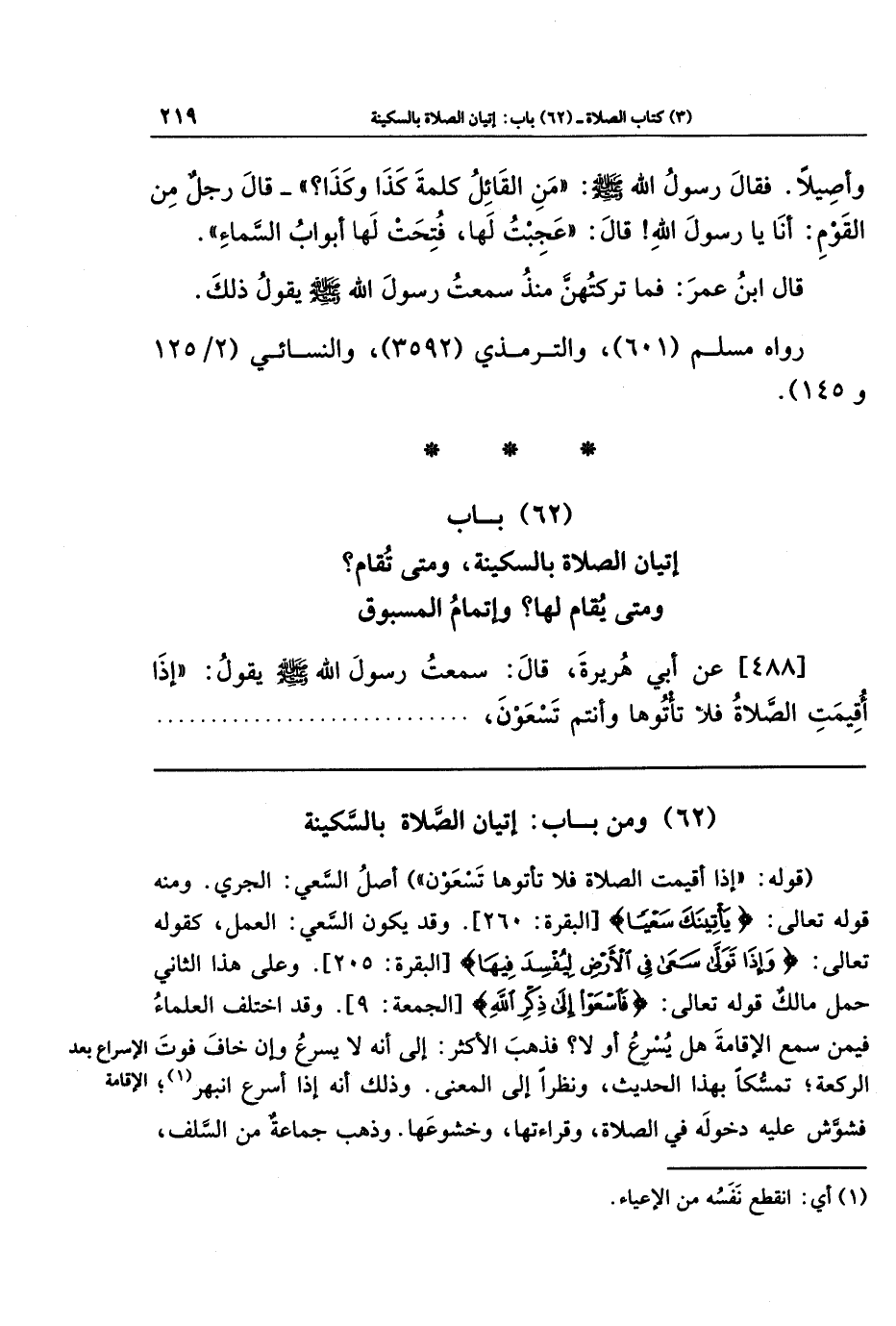 (62) ومن باب: إتيان الصلاة بالسكينة