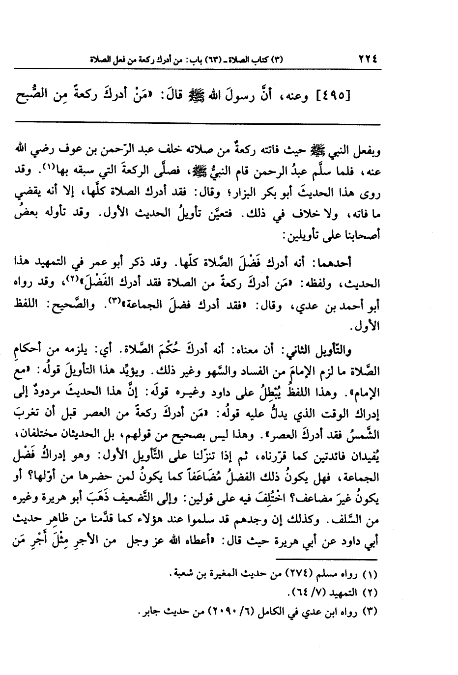 [495]- وَعَنهُ، أَنَّ رَسُولَ اللَّهِ - صلى الله عليه وسلم - قَالَ: مَن أَدرَكَ رَكعَةً مِنَ الصُّبحِ