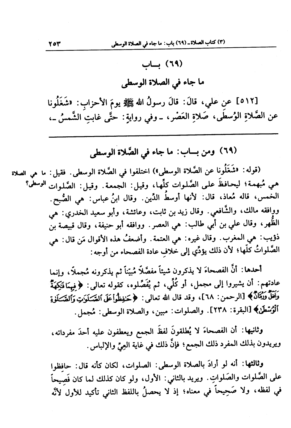 (69) ومن باب: ما جاء في الصلاة الوسطى