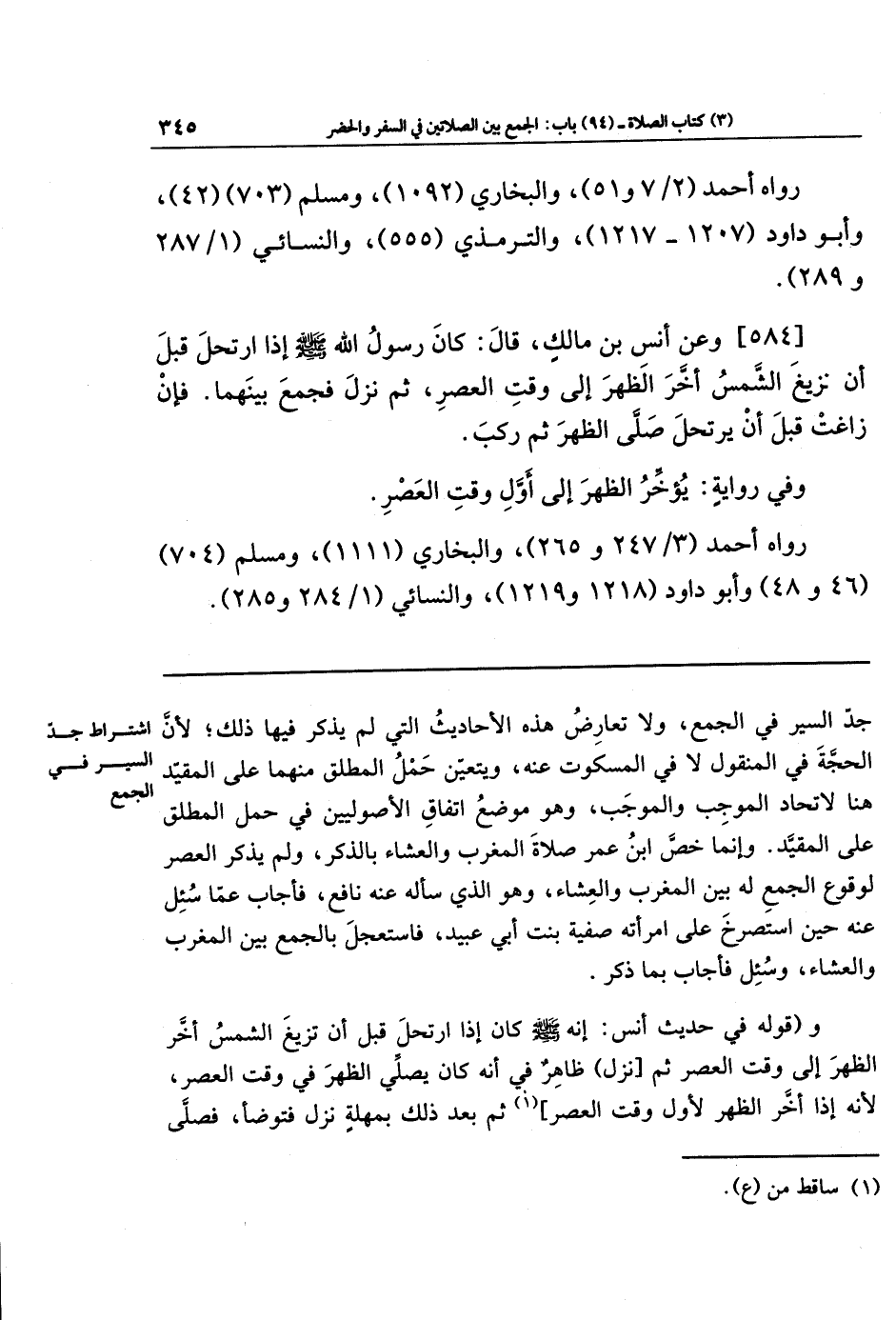 [584]- وعَن أَنَسِ بنِ مَالِكٍ قَالَ: كَانَ رَسُولُ اللهِ - صلى الله عليه وسلم - إِذَا ارتَحَلَ قَبلَ أَن تَزِيغَ الشَّمسُ أَخَّرَ الظُّهرَ إِلَى وَقتِ العَصرِ، ثُمَّ نَزَلَ فَجَمَعَ بَينَهُمَا. فَإِن زَاغَتِ قَبلَ أَن يَرتَحِلَ صَلَّى الظُّهرَ ثُمَّ رَكِبَ.