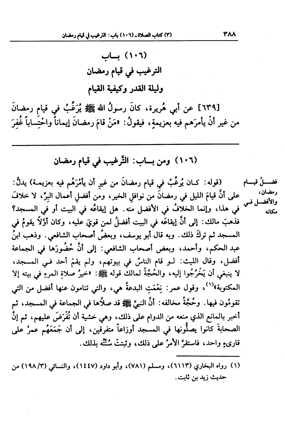 (106) باب الترغيب في قيام رمضان وليلة القدر وكيفية القيام