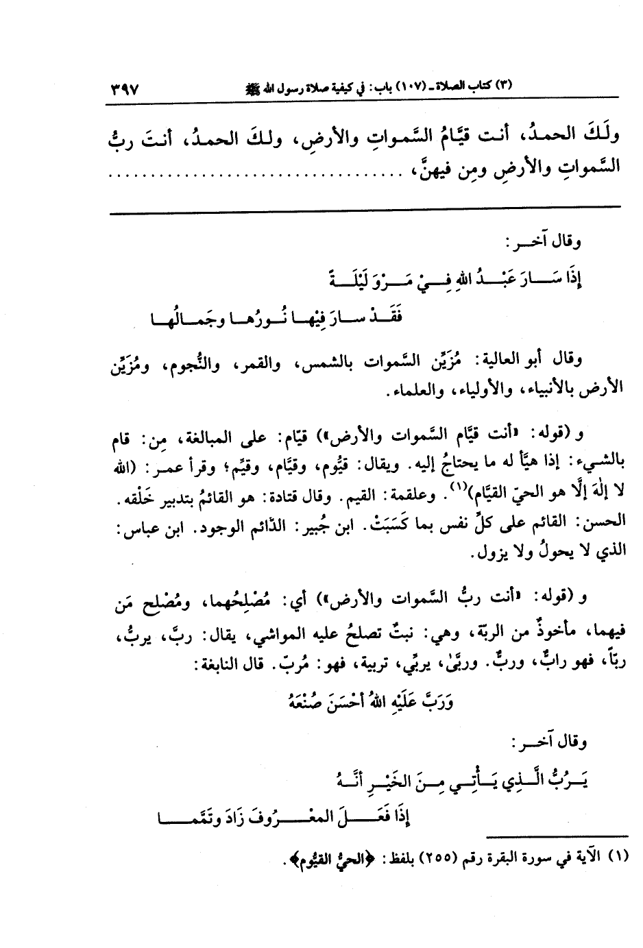 وَلَكَ الحَمدُ، أَنتَ قَيَّامُ السَّمَاوَاتِ وَالأَرضِ، وَلَكَ الحَمدُ، أَنتَ رَبُّ السَّمَاوَاتِ وَالأَرضِ وَمَن فِيهِنَّ،