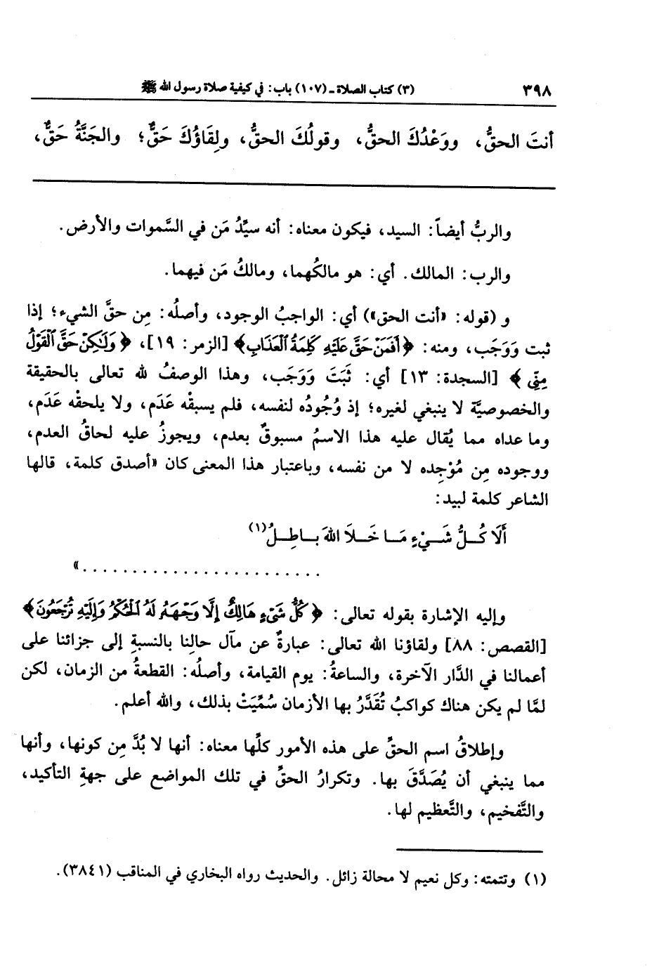 (¬1) وتتمته: وكل نعيم لا محالة زائل. والحديث رواه البخاري في المناقب (3841).