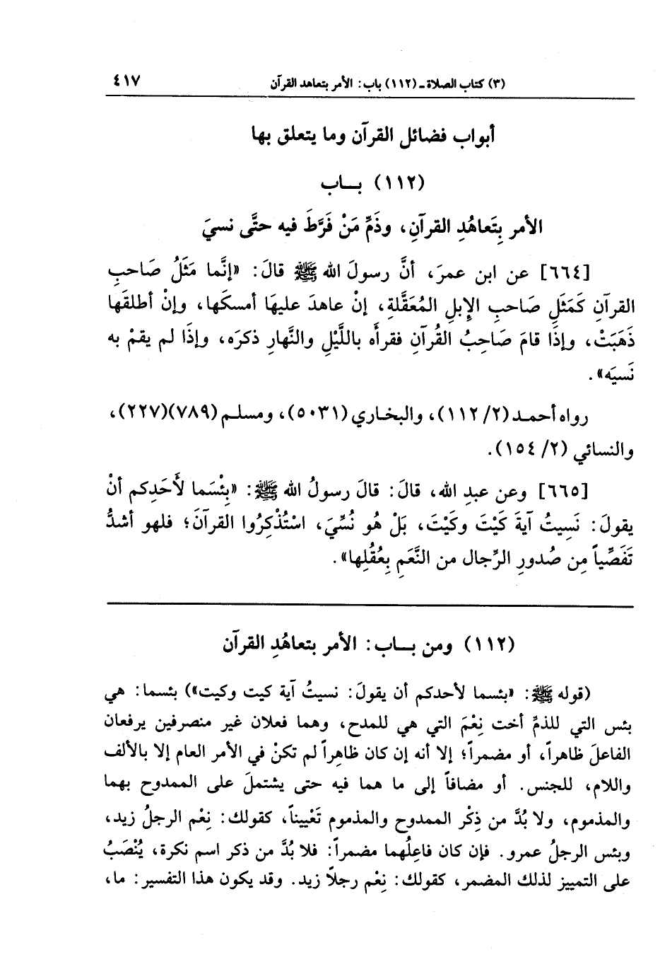 (112) باب الأمر بِتَعاهُدِ القرآن، وذَمِّ من فرط فيه حتى نسي
