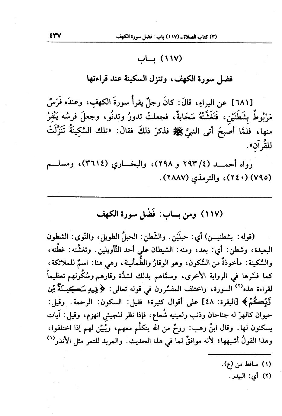 (117) باب فضل سورة الكهف، وتنزل السكينة عند قراءتها