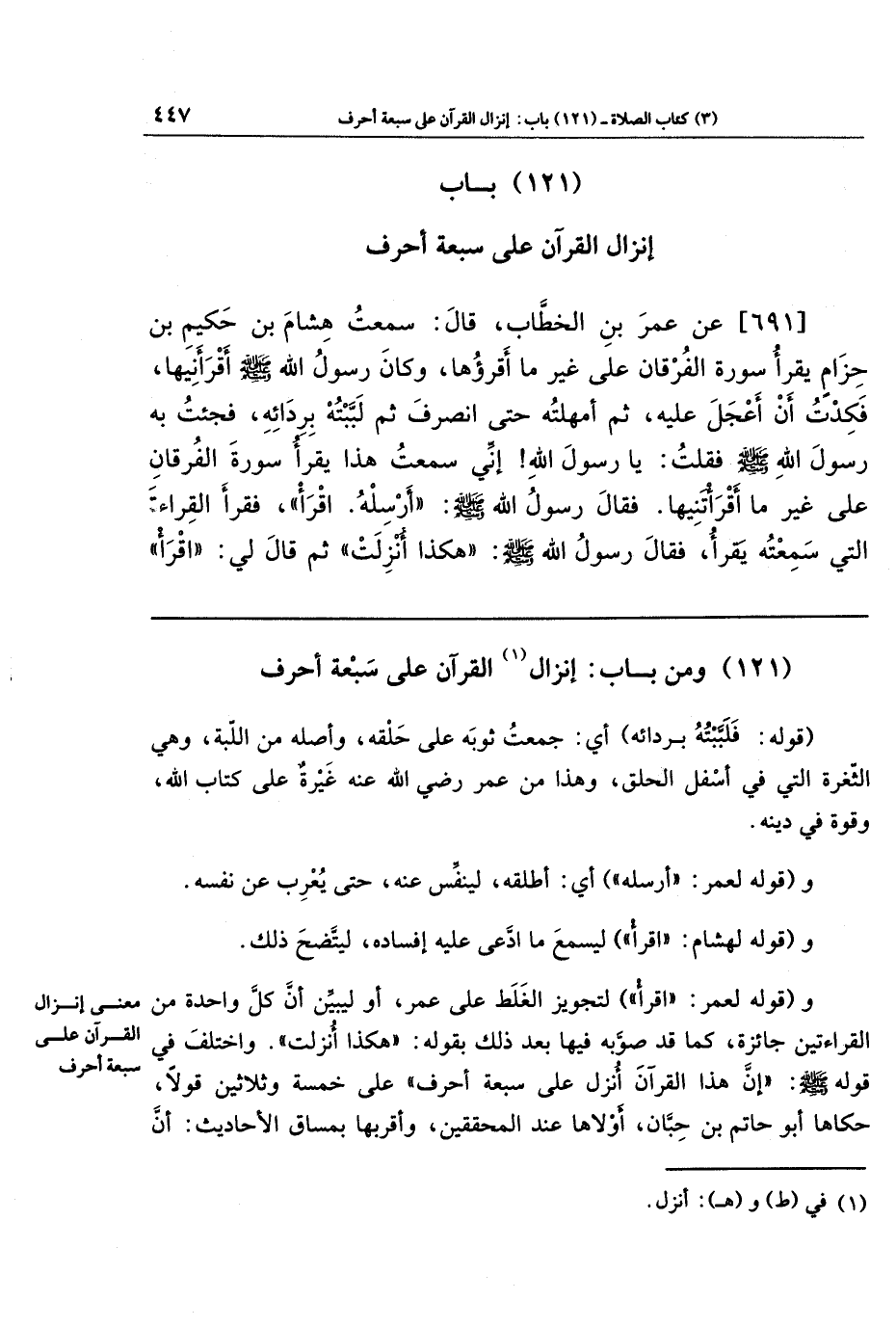 (121) ومن باب: إنزال (¬1) القرآن على سبعة أحرف