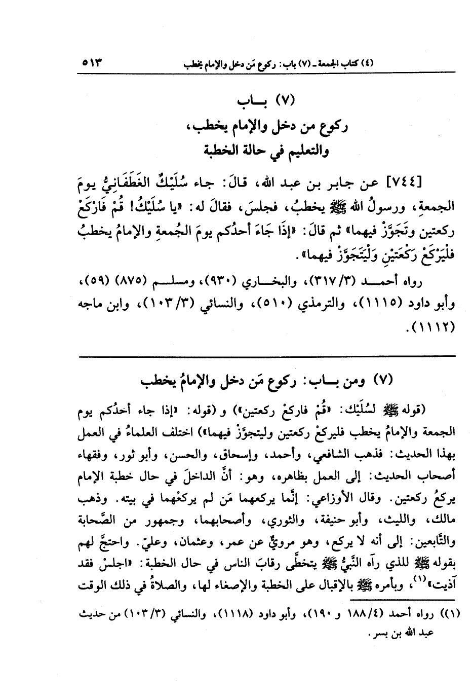(7) باب ركوع من دخل والإمام يخطب، والتعليم في حالة الخطبة