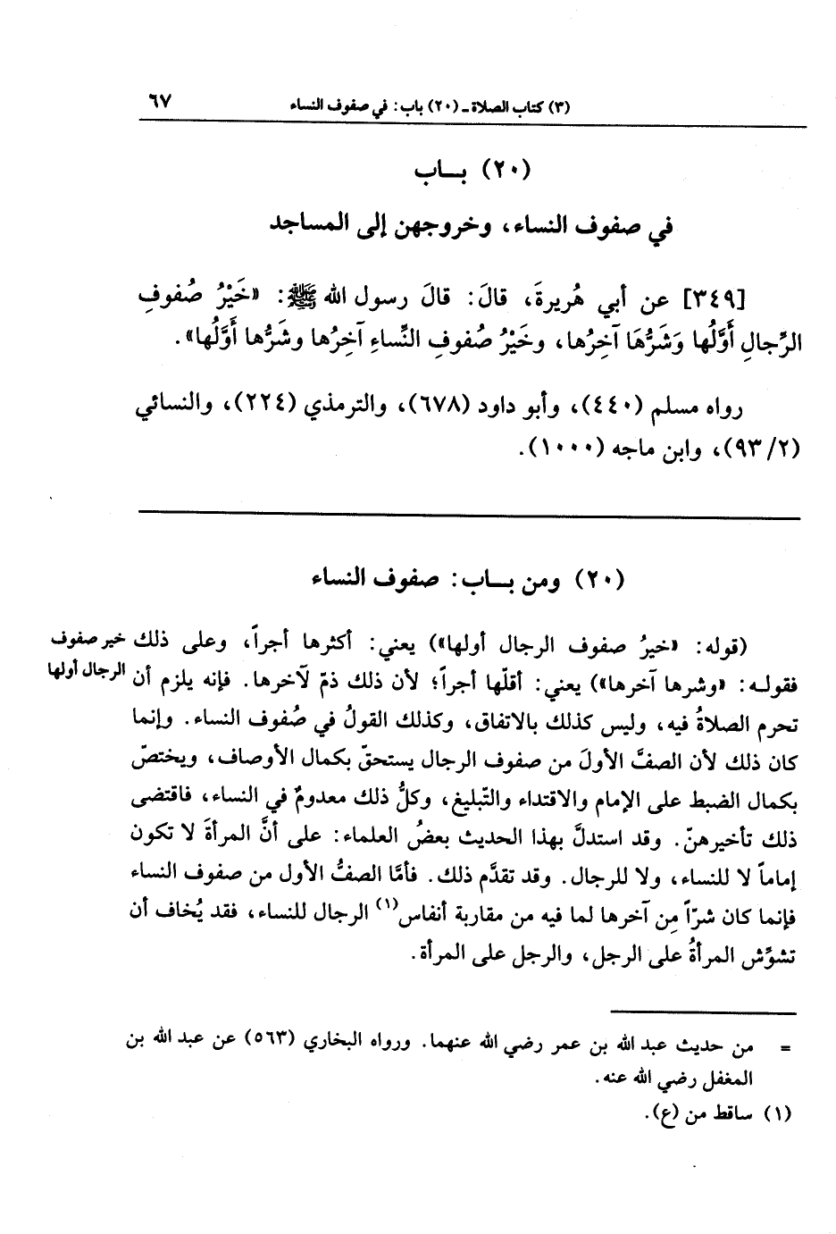 (20) باب في صفوف النساء وخروجهن إلى المساجد