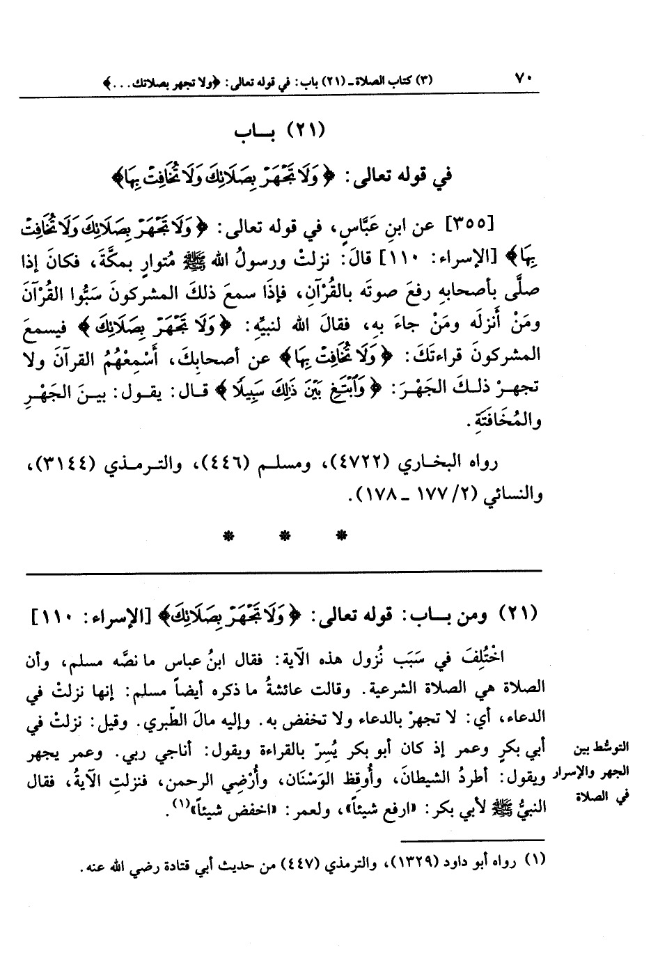 (21) ومن باب: قوله تعالى {وَلا تَجهَر بِصَلاتِكَ}