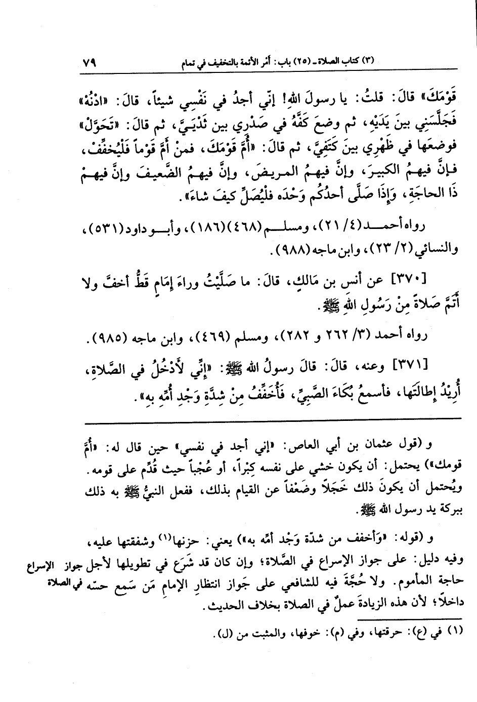 [370]- عَن أَنَسِ بنِ مَالِكٍ قَالَ: مَا صَلَّيتُ وَرَاءَ إِمَامٍ قَطُّ أَخَفَّ وَلا أَتَمَّ صَلاةً مِن رَسُولِ اللهِ صلى الله عليه وسلم.