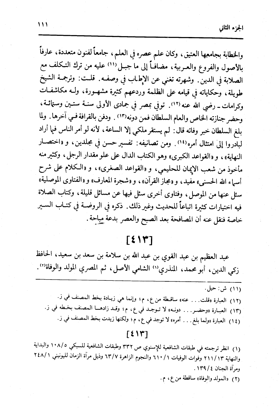 413 - عبد الْعَظِيم بن عبد الْقوي بن عبد الله بن سَلامَة بن سعد بن سعيد الْحَافِظ زكي الدَّين أَبُو مُحَمَّد الْمُنْذِرِيّ الشَّامي الأَصْل ثمَّ الْمصْرِيّ المولد والوفاة