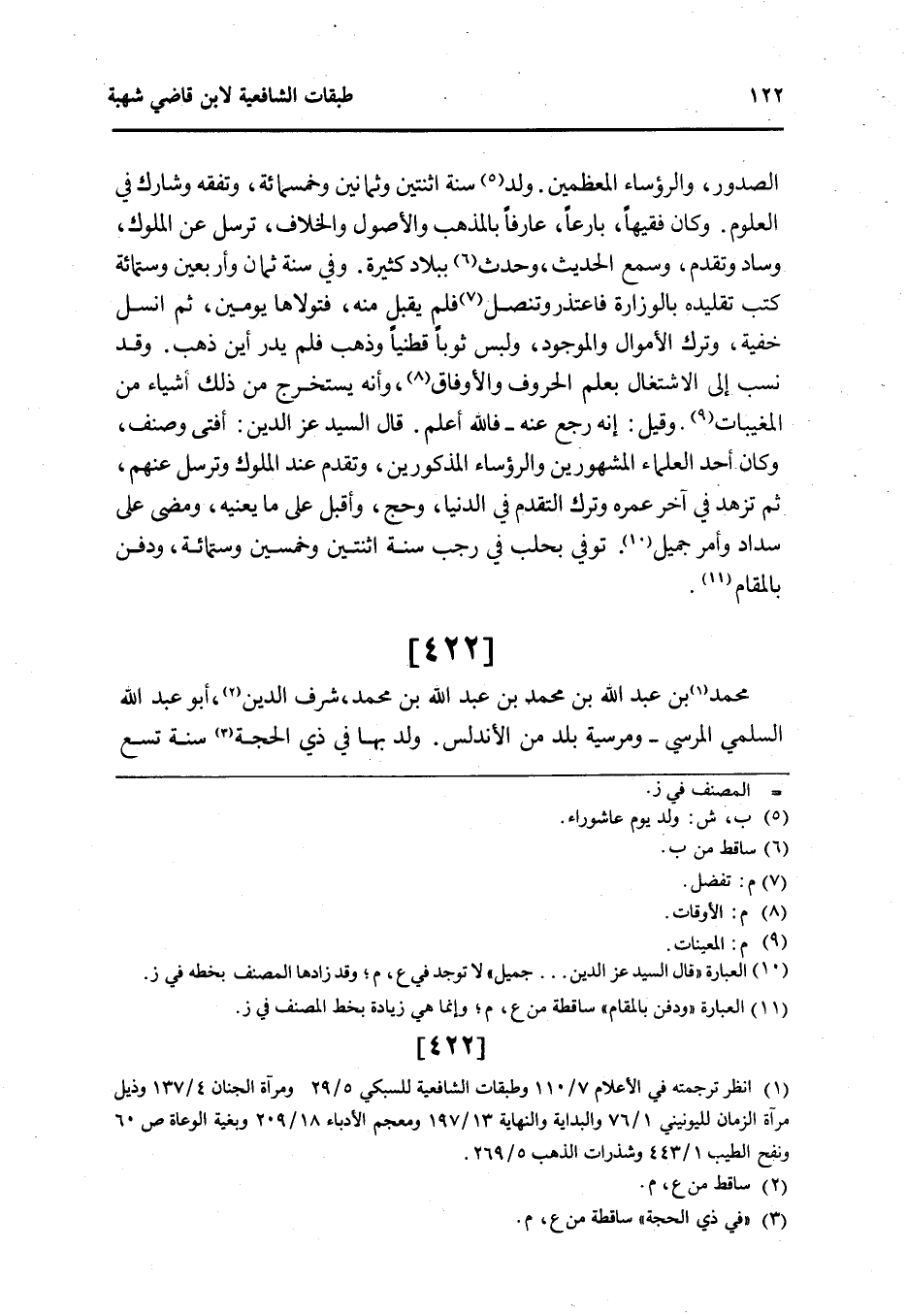 422 - مُحَمَّد بن عبد الله بن مُحَمَّد بن عبد الله بن مُحَمَّد شرف الدَّين أَبُو عبد الله السّلمِيّ المرسي ومرسية بلد من الأندلس ولد بهَا فِي ذِي الْحجَّة سنة تسع