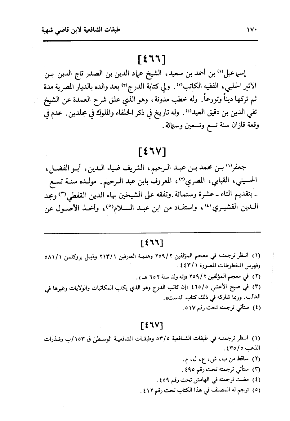 467 - جَعْفَر بن مُحَمَّد بن عبد الرَّحِيم الشريف ضِيَاء الدَّين أَبُو الْفضل الْحُسَيْنِي القبابي الْمصْرِيّ الْمَعْرُوف بِابْن عبد الرَّحِيم مولده سنة تسع بِتَقْدِيم التَّاء عشرَة وسِتمِائَة وتفقه على الشَّيْخَيْنِ بهاء الدَّين القفطي ومجد الدَّين الْقشيرِي واستفاد من ابْن عبد السَّلَام وَأخذ الْأُصُول عَن