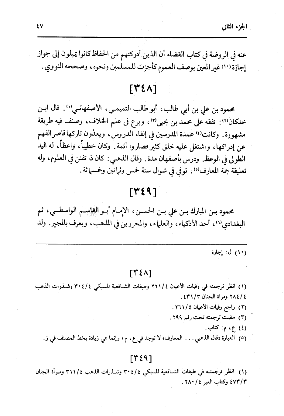 349 - مَحْمُود بن الْمُبَارك بن عَليّ بن الْحسن الإِمَام أَبُو الْقَاسِم الوَاسِطِيّ ثمَّ الْبَغْدَادِيّ أحد الأذكياء وَالْعُلَمَاء والمحررين فِي الْمَذْهَب وَيعرف بالمجير ولد