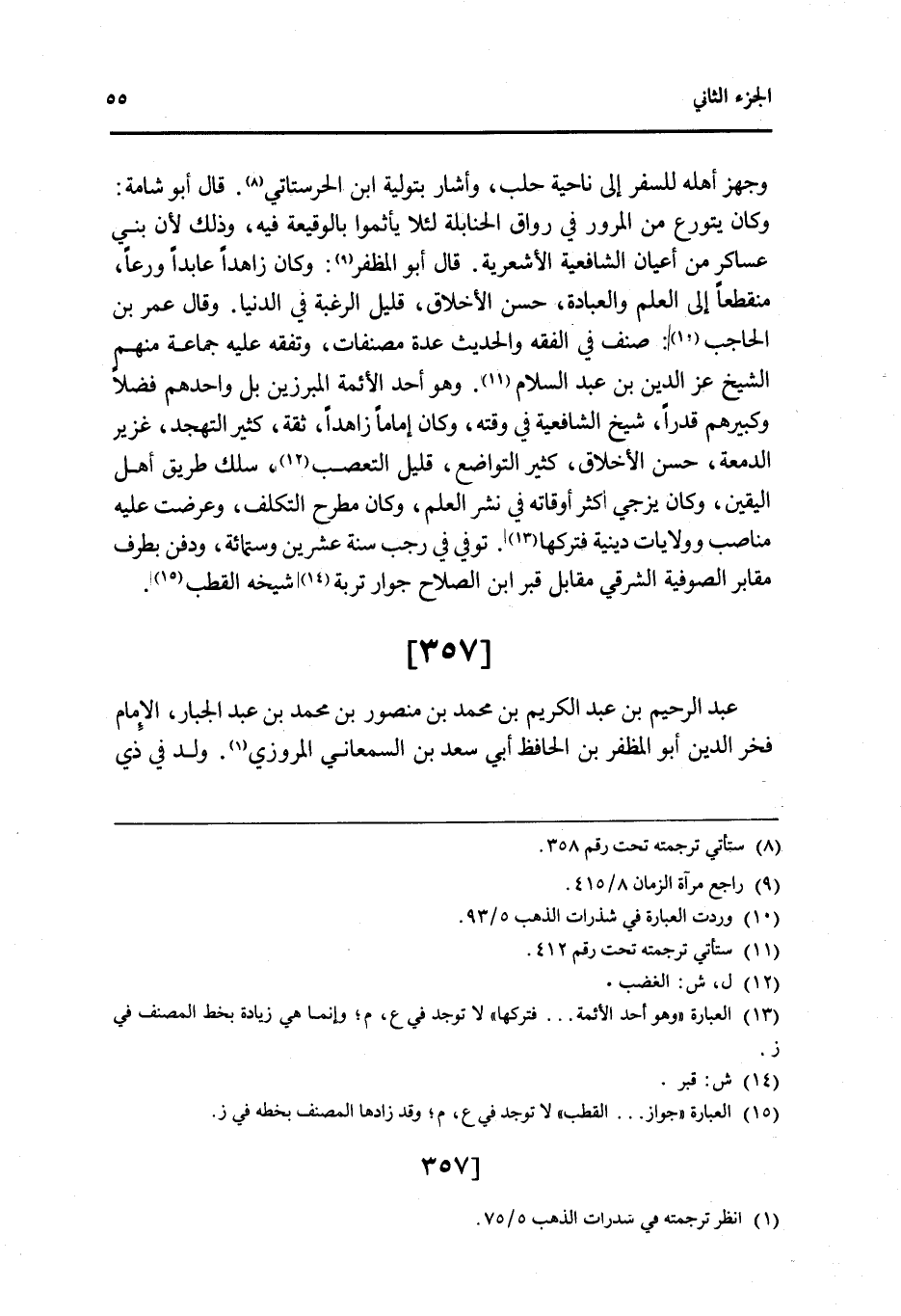 357 - عبد الرَّحِيم بن عبد الْكَرِيم بن مُحَمَّد بن مَنْصُور بن مُحَمَّد بن عبد الْجَبَّار الإِمَام فَخر الدَّين أَبُو المظفر بن الْحَافِظ أبي سعد بن السَّمْعَانِيّ الْمروزِي ولد فِي ذِي