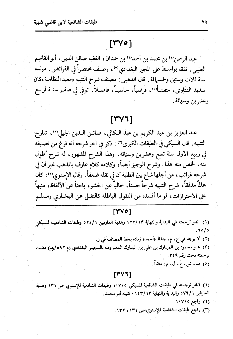 375 - عبد الرَّحْمَن بن مُحَمَّد بن أَحْمد بن حمدَان الْفَقِيه صائن الدَّين أَبُو الْقَاسِم الطَّيِّبِيّ تفقه بواسط على المجير الْبَغْدَادِيّ وصنف مُخْتَصرا فِي الْفَرَائِض مولده سنة ثَلَاث وَسِتِّينَ وَخَمْسمِائة قَالَ الذَّهَبِيّ مُصَنف شرح التَّنْبِيه ومعيد النظامية كَانَ سديد الْفَتَاوَى متفننا فرضيا حاسبا فَاضلا توفّي فِي صفر سنة أَربع وَعشْرين وسِتمِائَة