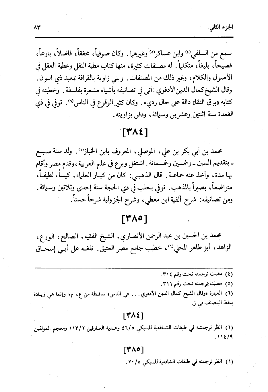 385 - مُحَمَّد بن الْحُسَيْن بن عبد الرَّحْمَن الْأنْصَارِيّ الشَّيْخ الْفَقِيه الصَّالح الْوَرع الزَّاهِد أَبُو طَاهِر الْمحلي خطيب جَامع مصر الْعَتِيق تفقه على أبي إِسْحَاق