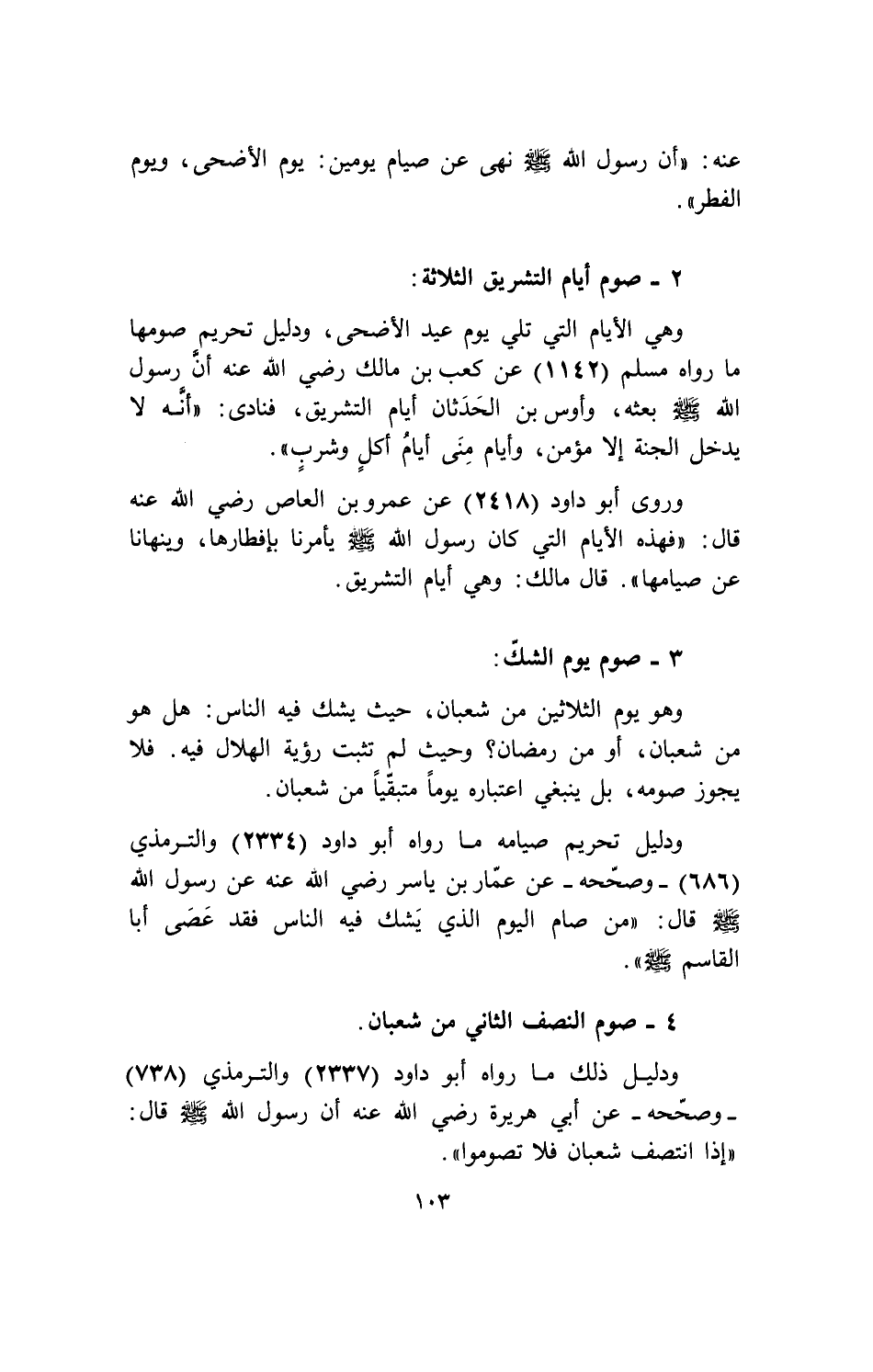 عنه -: " أن رسول الله - صلى الله عليه وسلم - نهى عن صيام يومين: يوم الأضحى، ويوم الفطر ".